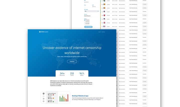 Explore the world's largest open dataset on internet censorship. Millions of measurements collected from more than 200 countries since 2012.