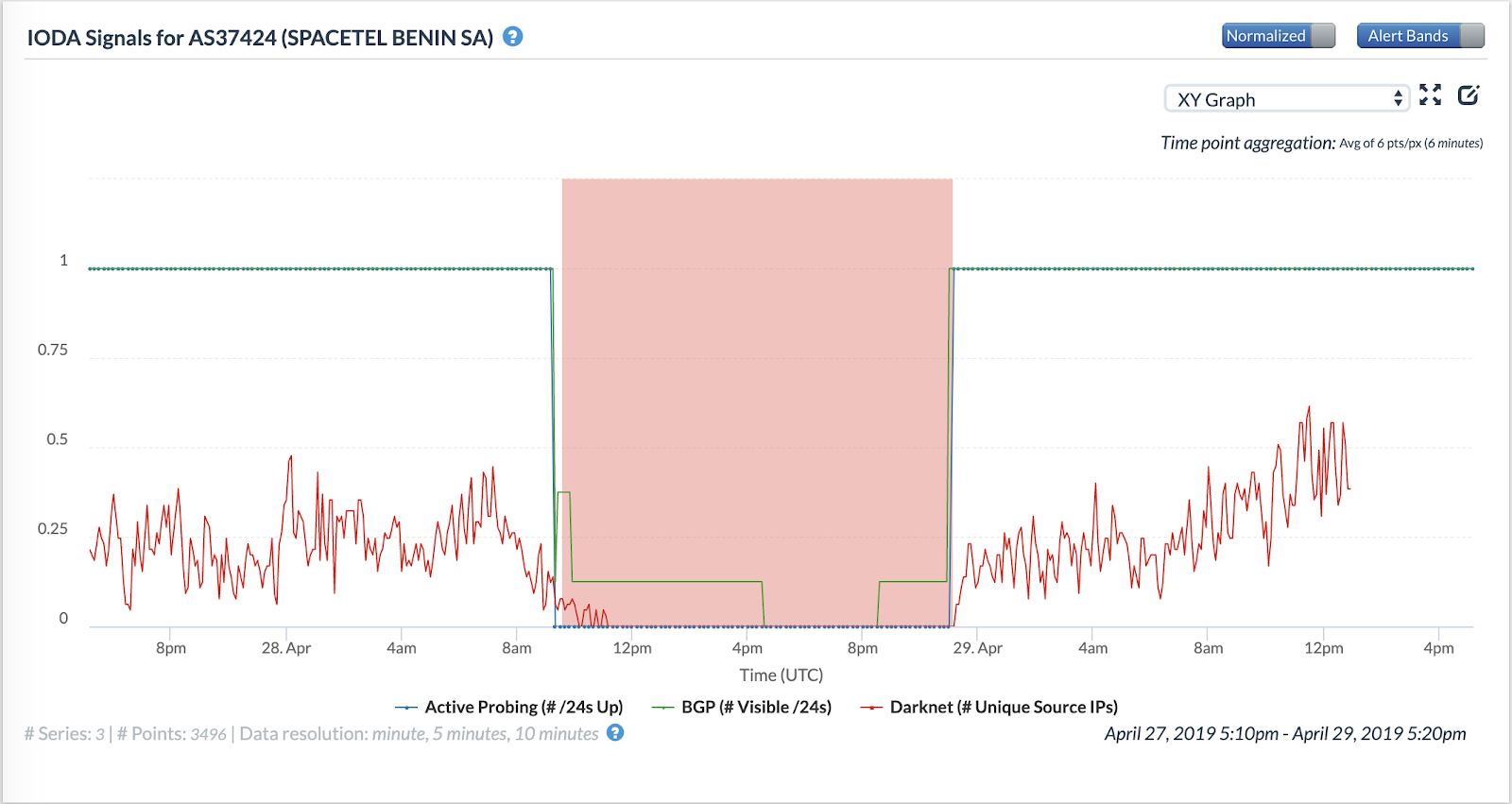 Figure 13: Internet Outage Detection and Analysis (IODA), Benin: