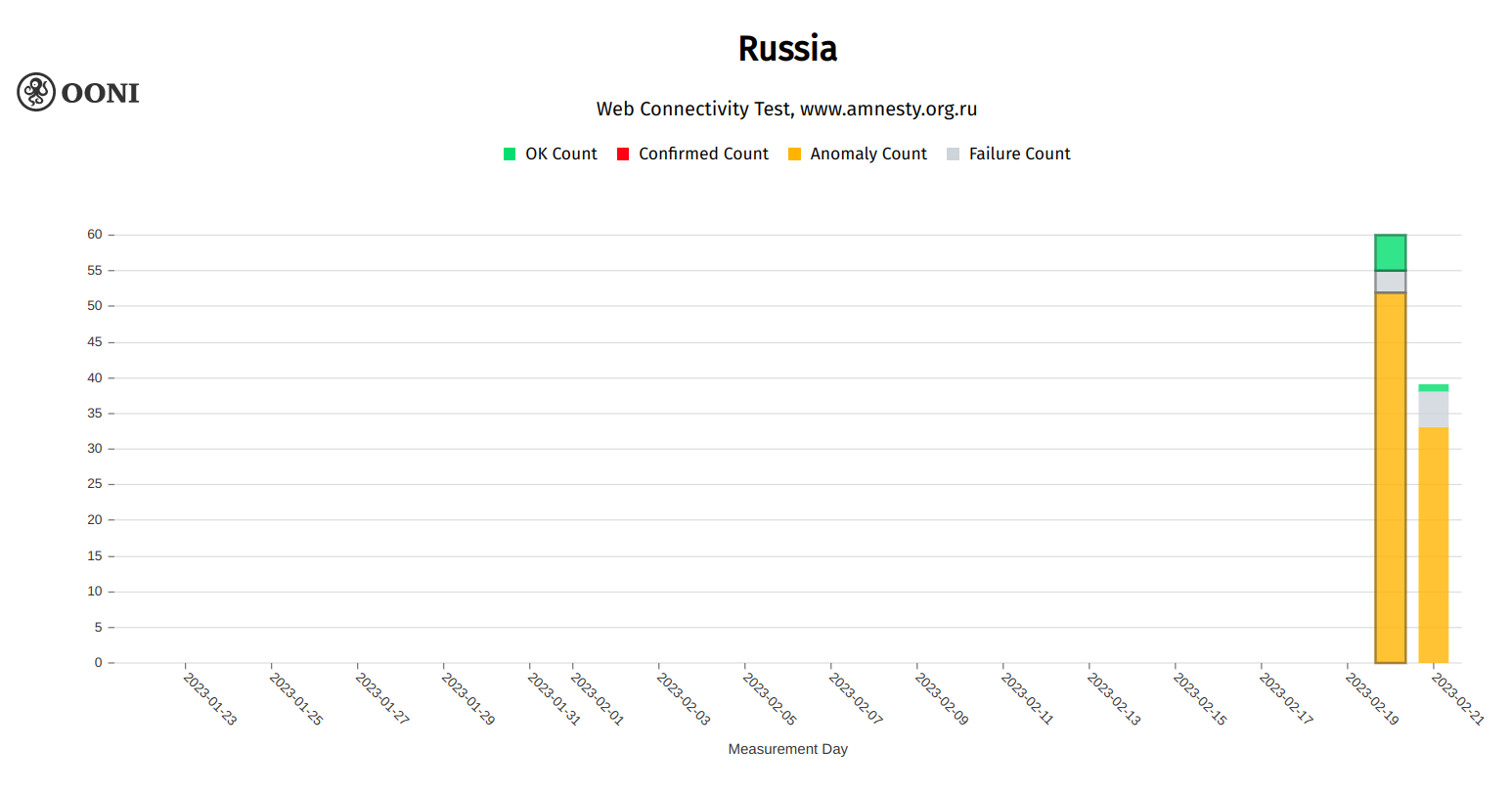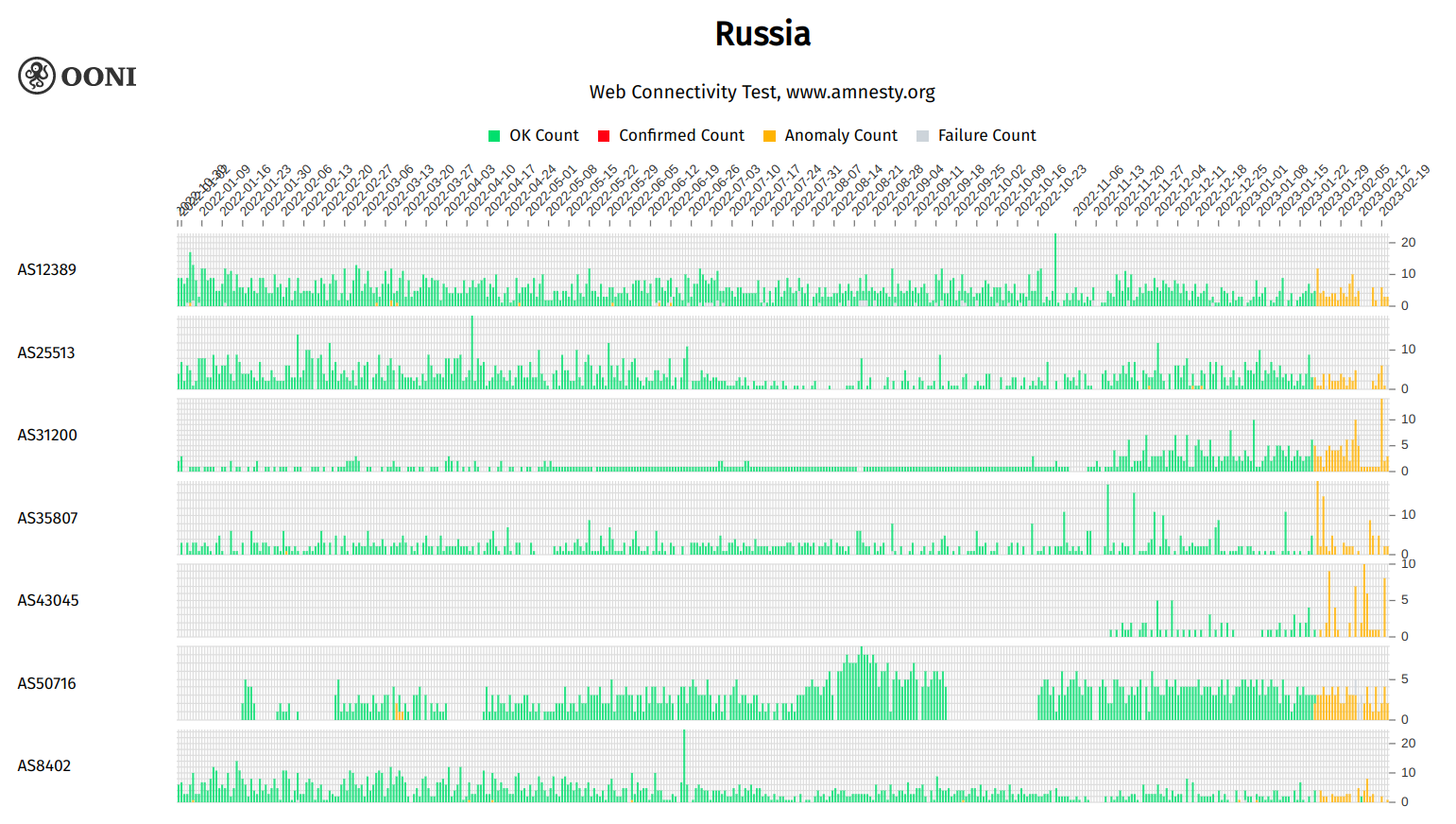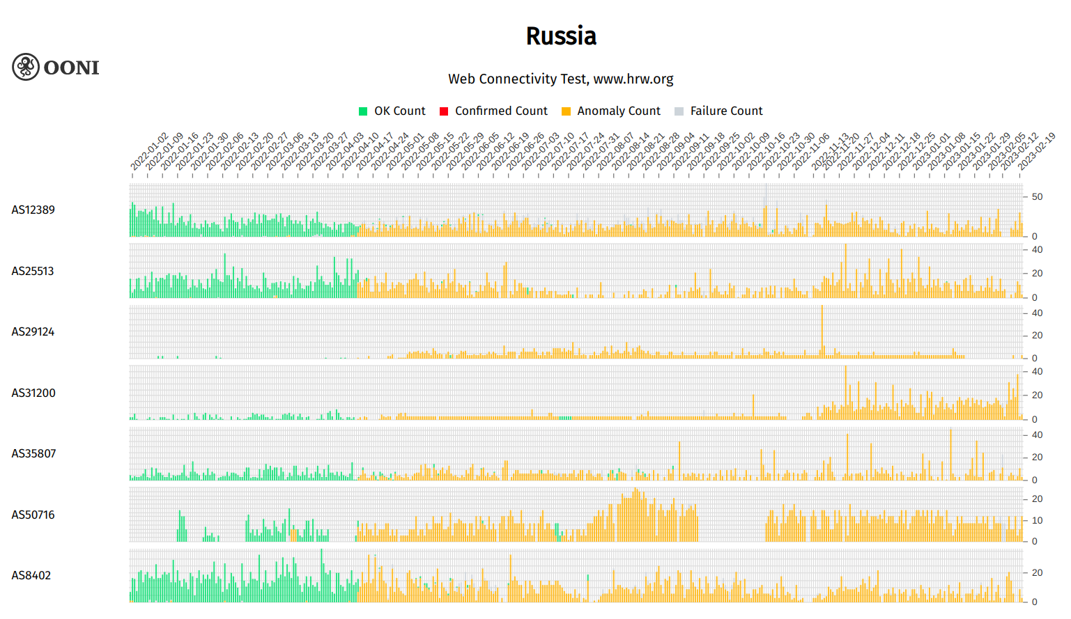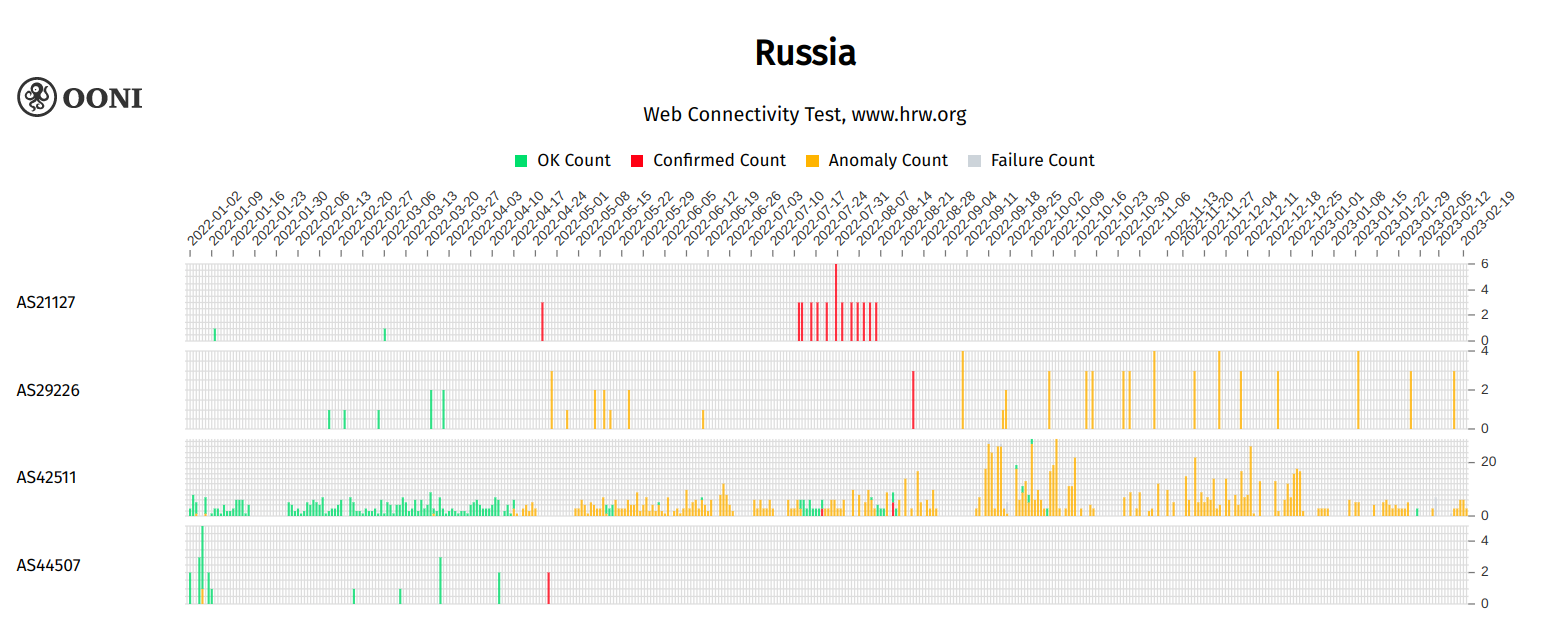 In this report, we attempt to answer this question through the analysis of OONI measurements collected from Russia between January 2022 to February 2023. We supplement our findings with information from relevant legal analysis and desk research provided by Roskomsvoboda.
