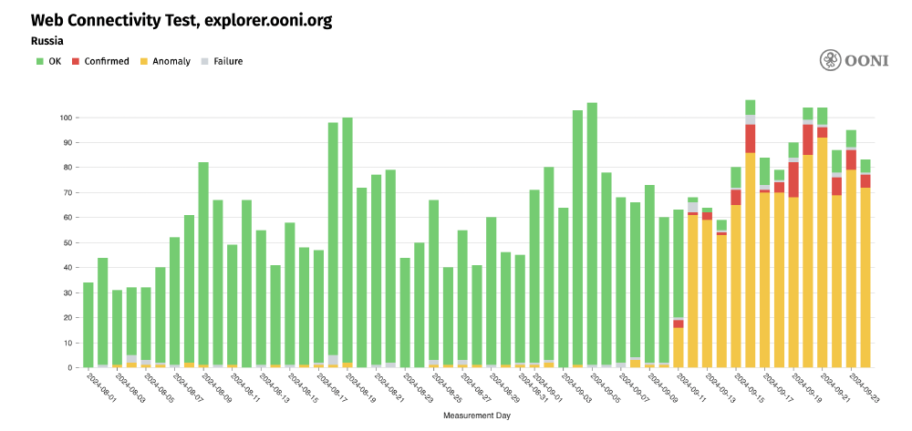 As of 11th September 2024, Russia has blocked one of our platforms: OONI Explorer.
