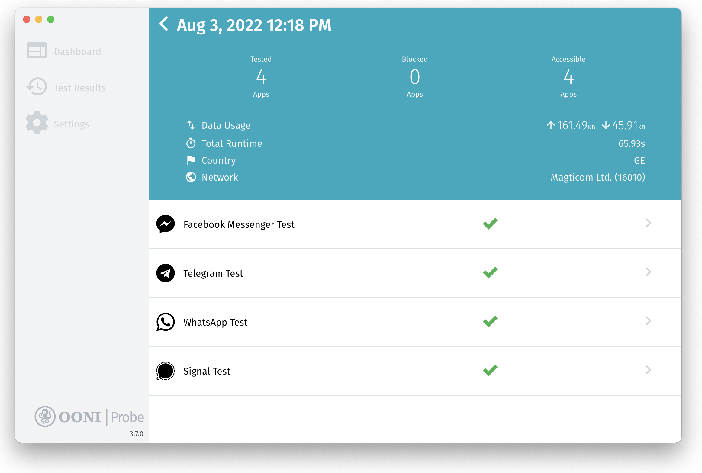 You can also access Signal test results through the instant messaging results in your OONI Probe app.