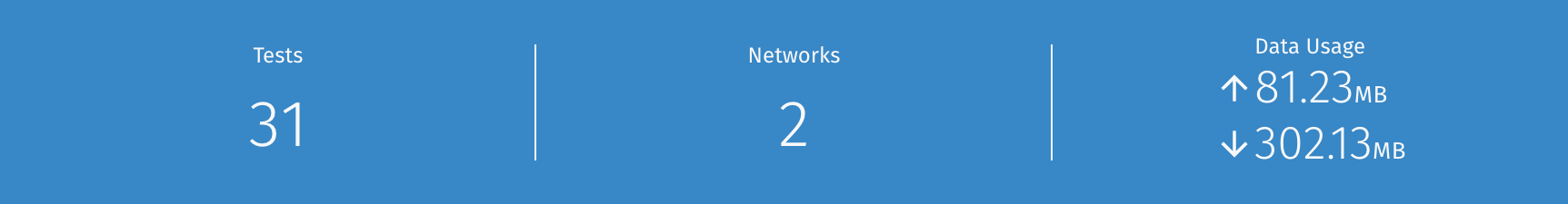In the top header, we share an overview of the results, along with the date and time of testing, and the country and network on which these tests were run. The main performance findings are also listed next to each test result.