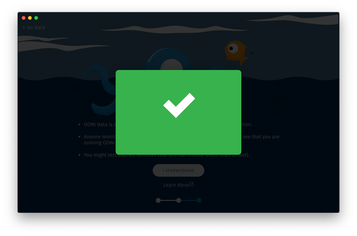 You have now completed the onboarding process and are ready to start using OONI Probe!